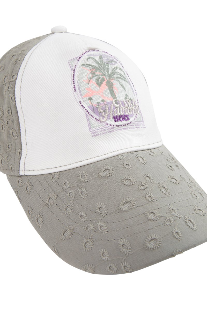 Casquette en broderie anglaise.