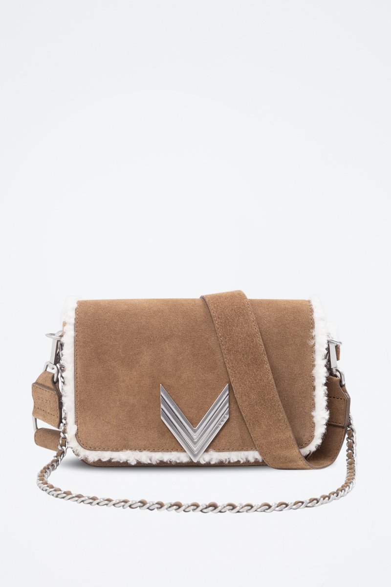 Sac bandoulière en cuir de veau - Camel - IKKS