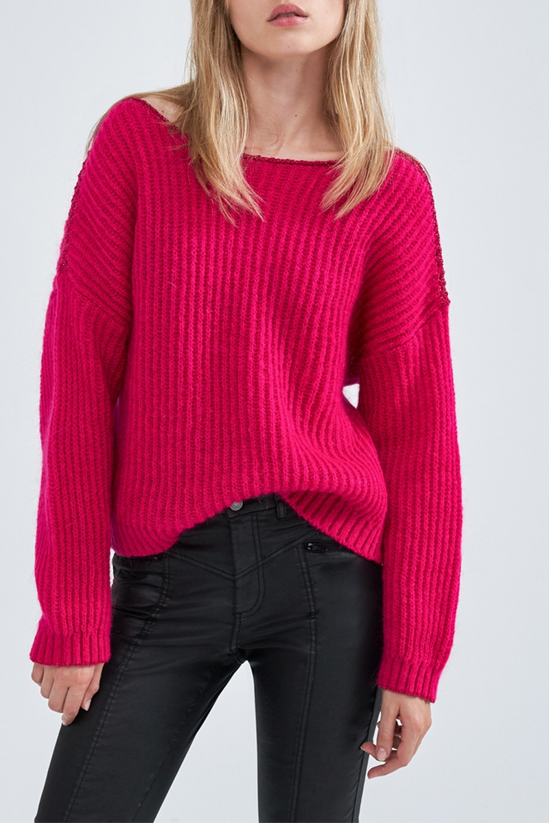 Paillètes à l’encolure, aux épaules et sur les manches.