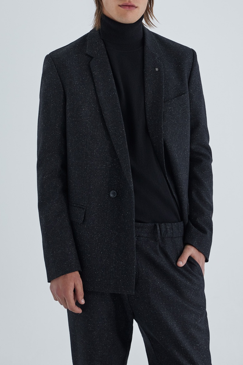 Veste de costume en laine et soiemélangées.