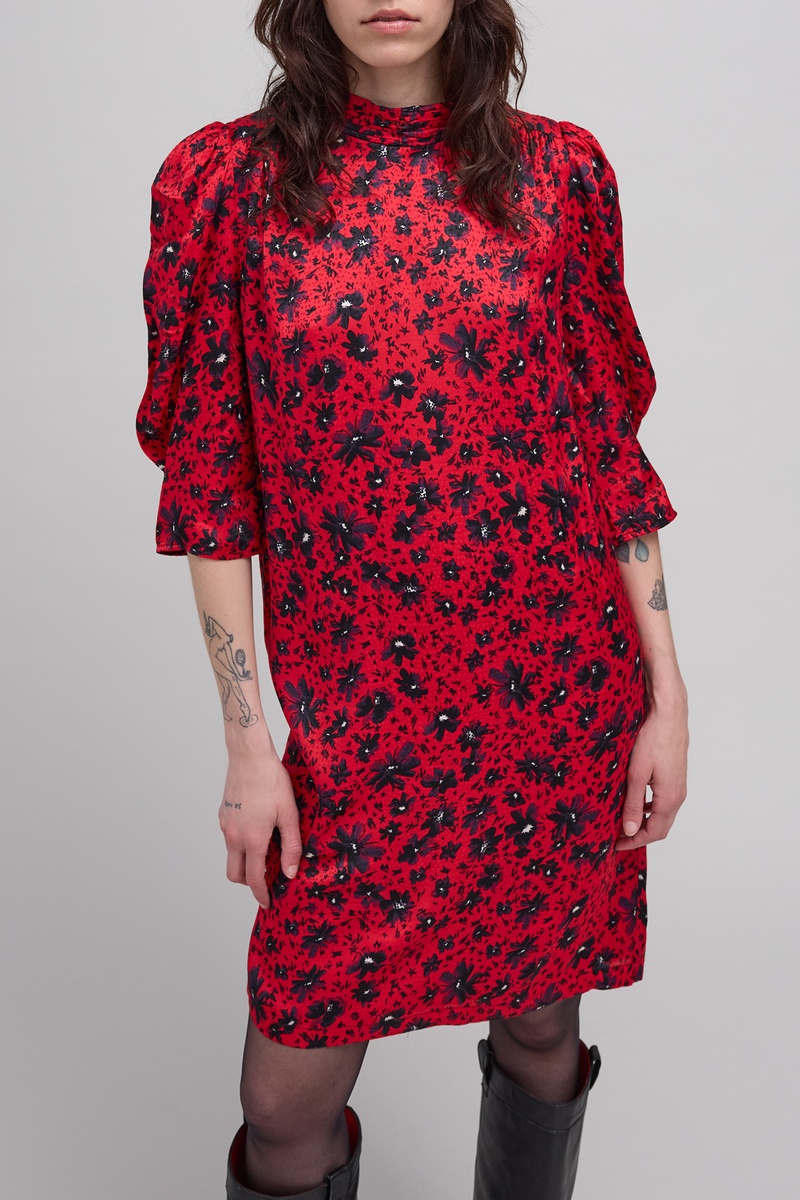 Robe droite à manches 3/4 bouffantes.