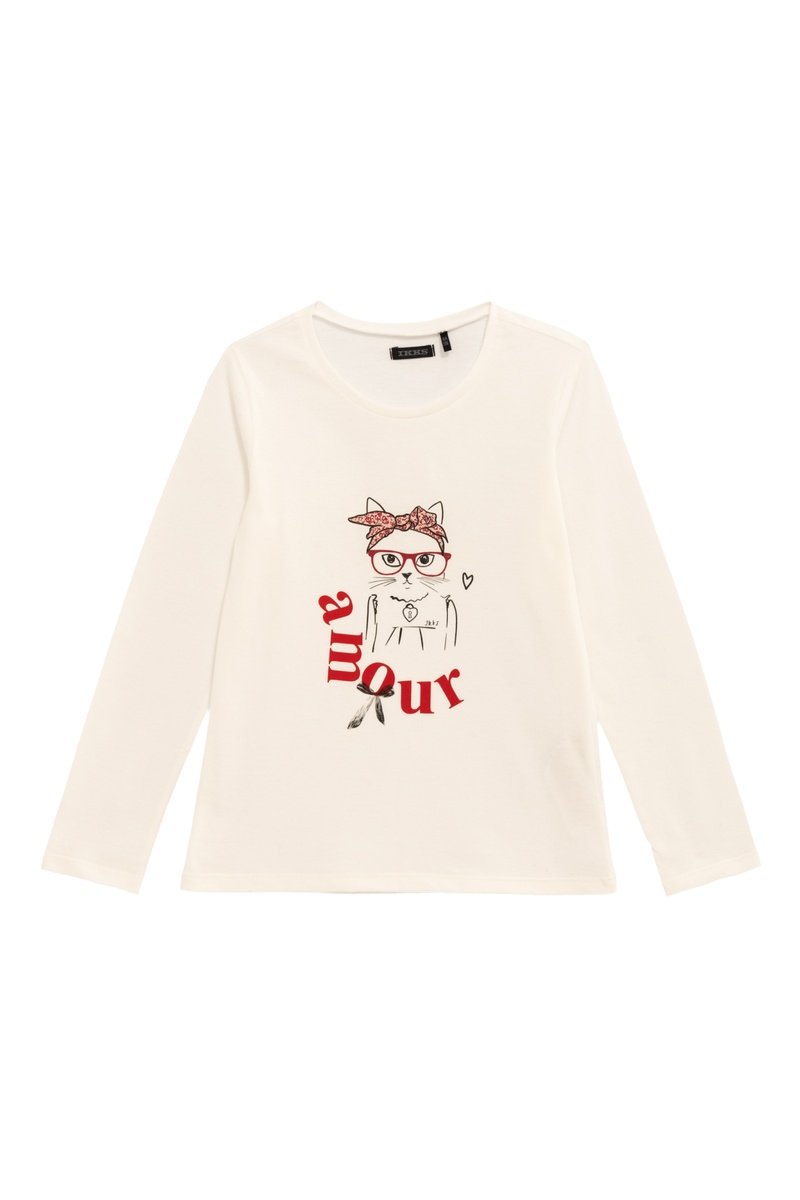 Lettrage, motifs fantaisie et logo pailletés devant. Empiècement en tulle au dos.