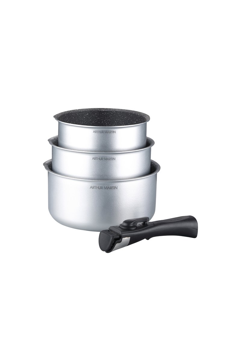 3 casseroles en aluminium avec poignée amovible - 16, 18 et 20 cm