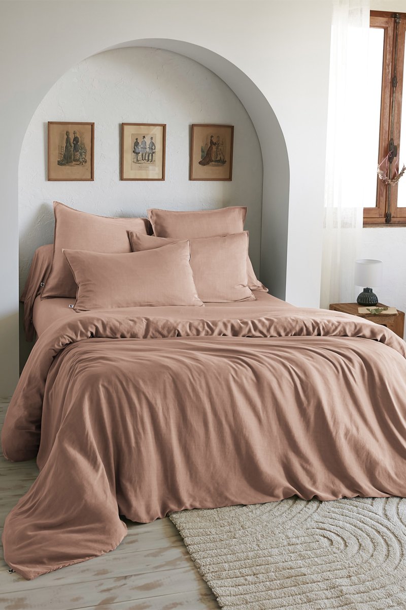Toutes nos parures de lit pour 2 personnes comportent 2 taies d’oreiller : à partir de la dimension 200 x 200 cm pour les parures avec housse de couette, à partir de la dimension 240 x 300 cm pour les parures avec drap plat.