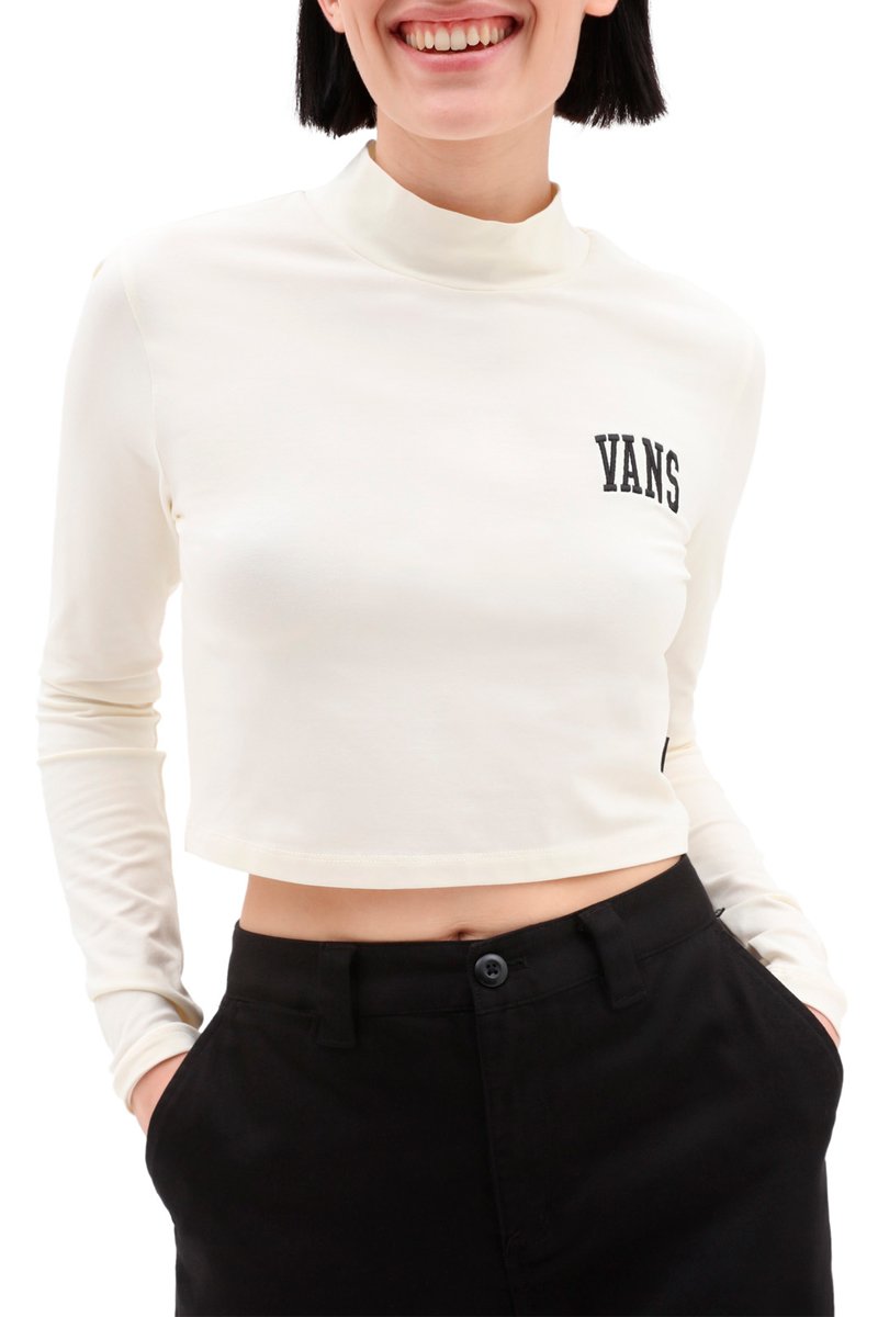 T-shirt cropped Mini Mock Neck LS - Ecru