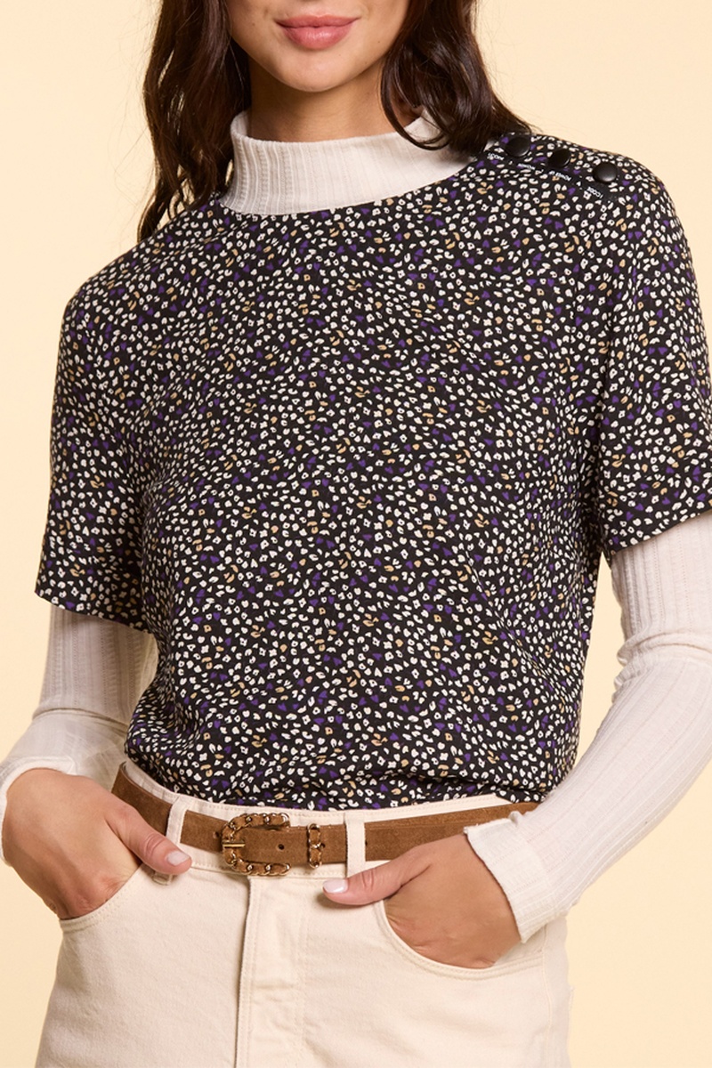 Empiècement avec logo et fermeture boutonnée à l’épaule gauche.
