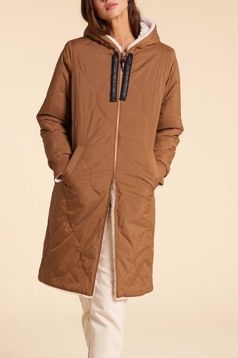 Fourrure synthétique et lien de serrage à la taille au verso.