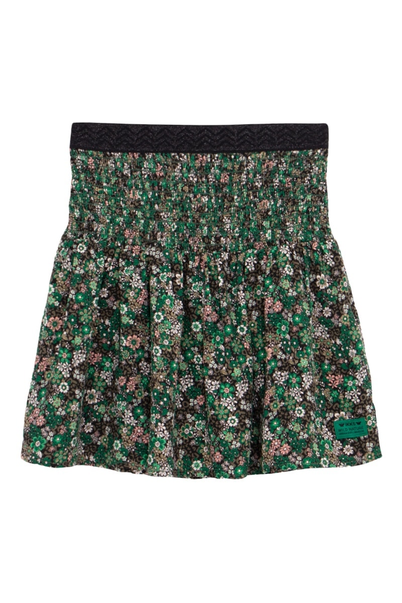 Empiècement avec lettrage, motifs papillons et logo à la base.