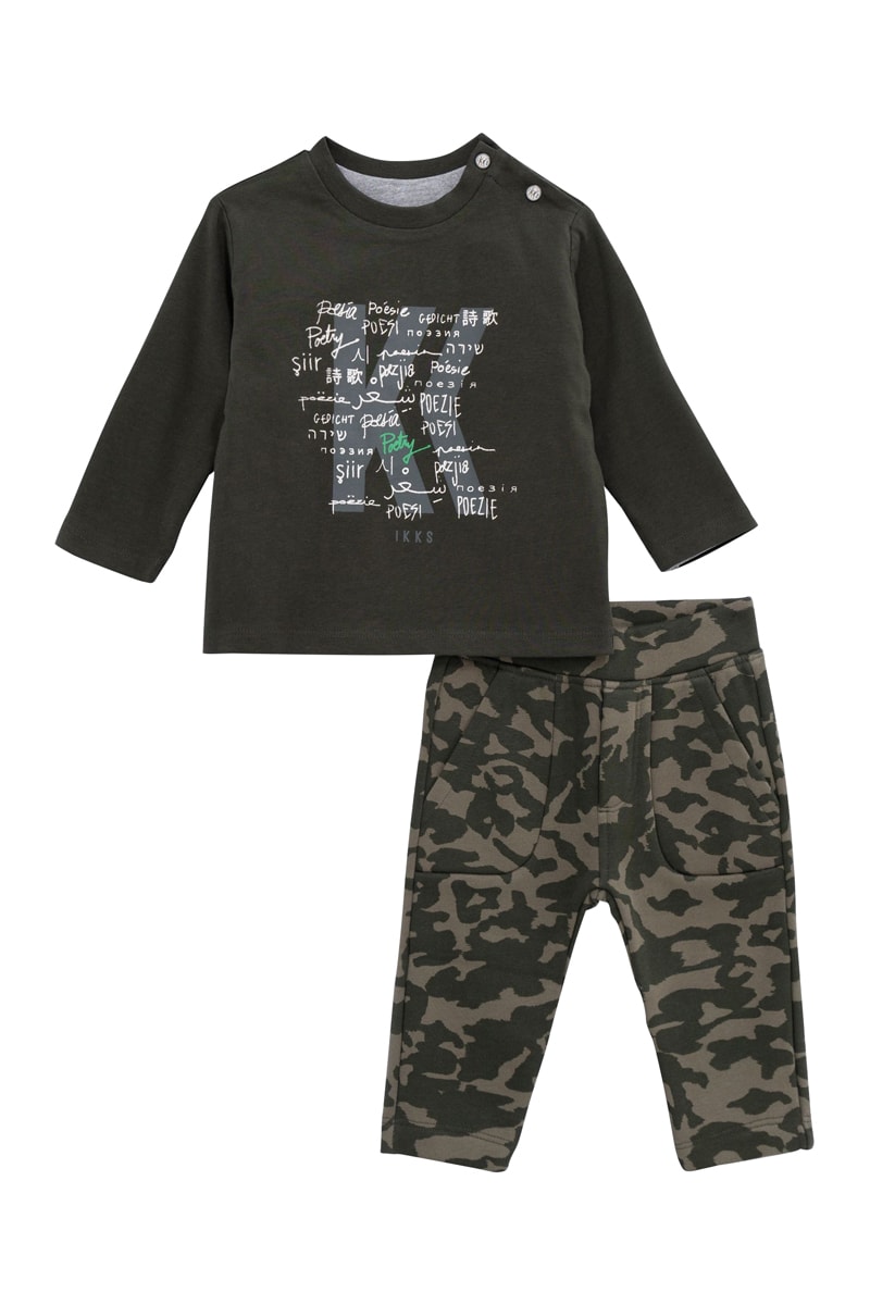 T-shirt réversible et pantalon - Kaki et gris clair chiné