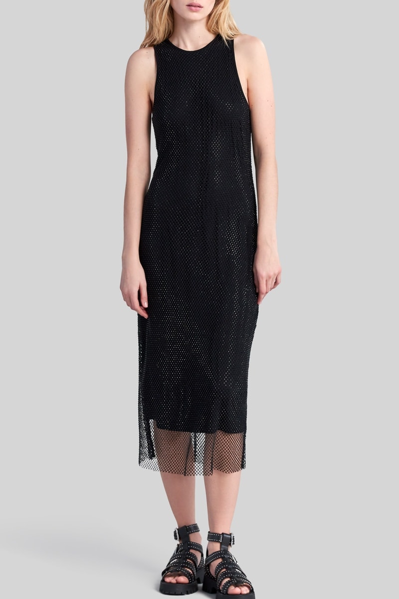 Robe droite en filet à strass.