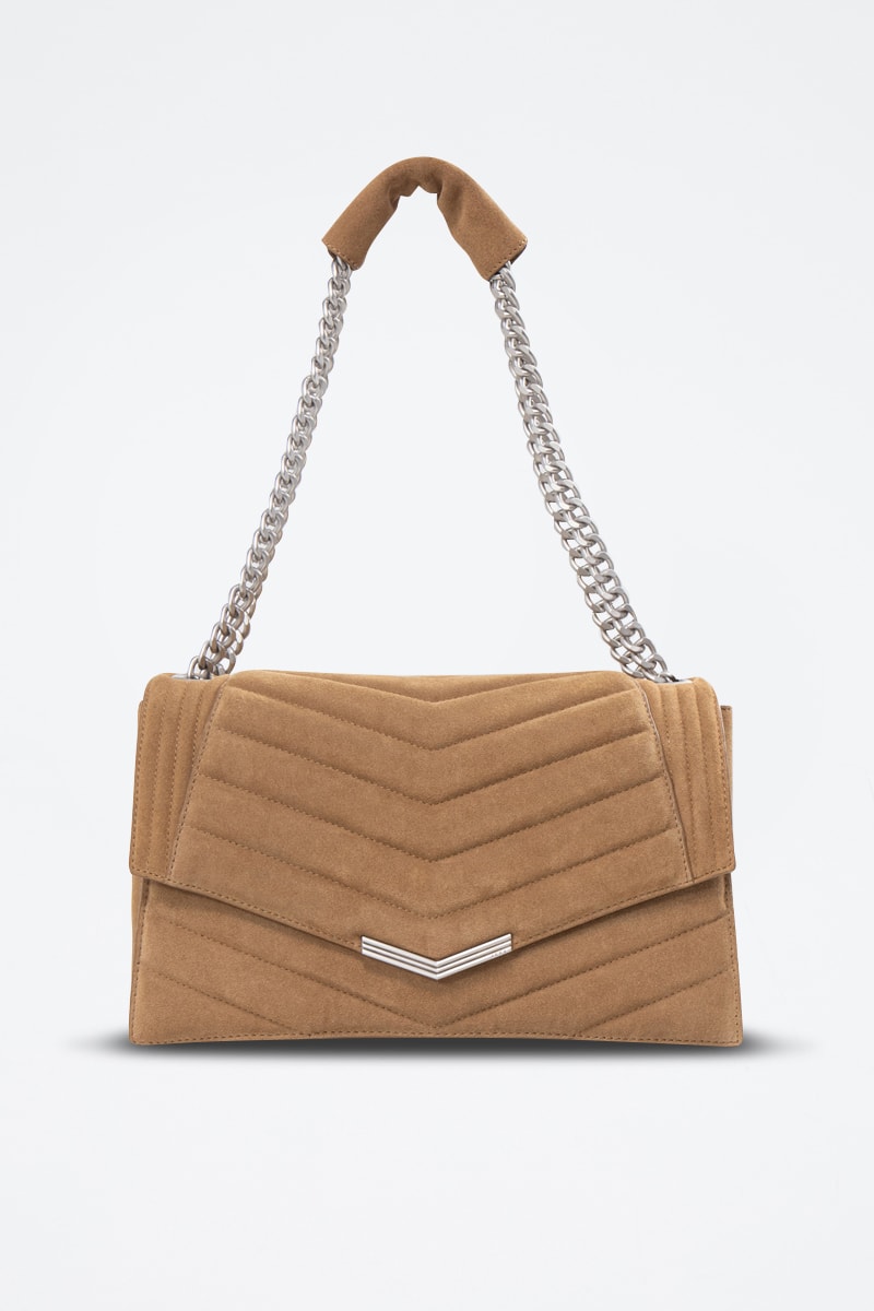 Sac porté épaule en cuir de veau nubuck - Beige