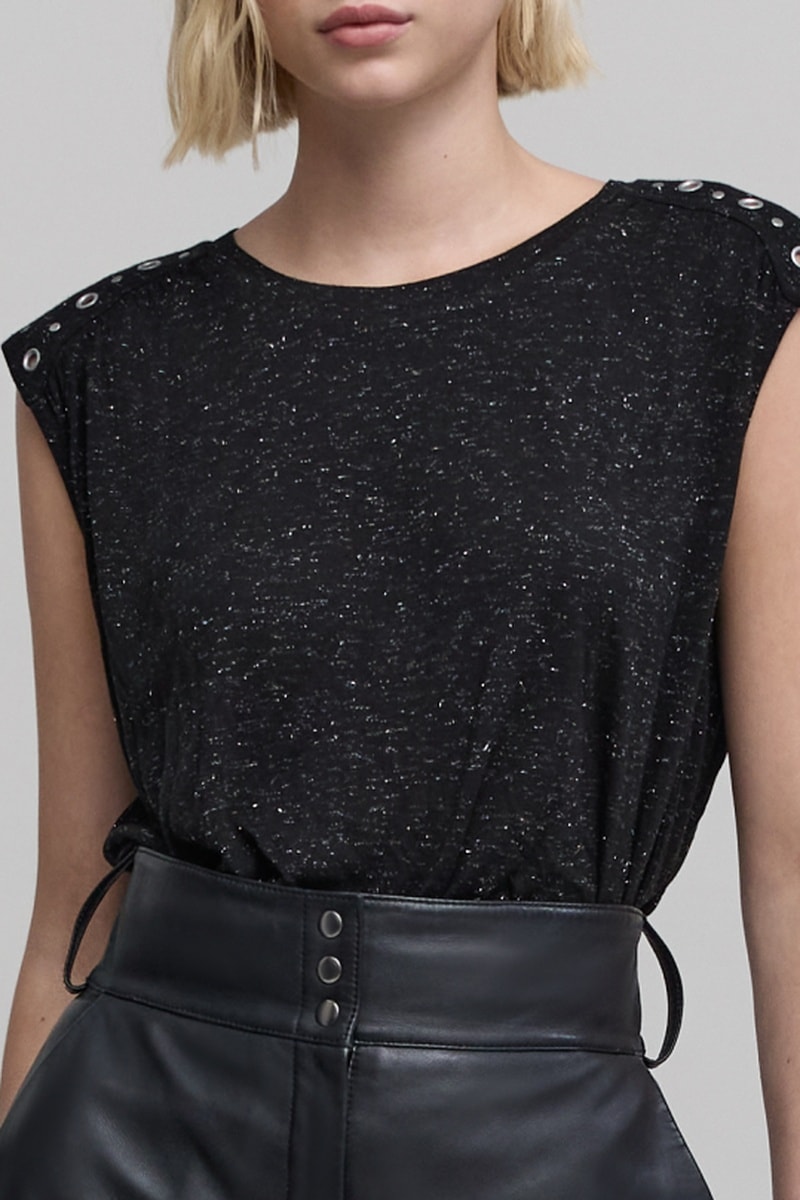 Œillets et empiècements en métal aux épaules.