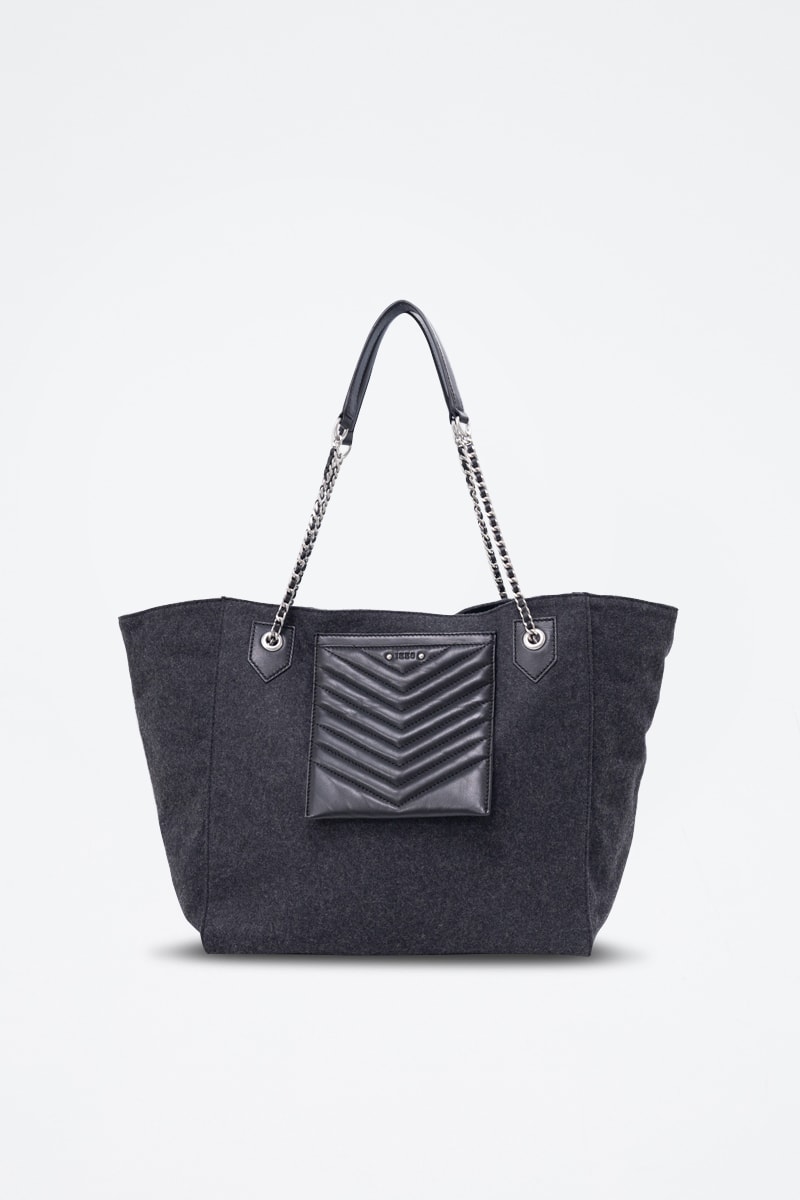 Poche en cuir de mouton, effet matelassé, logo en relief et empiècements en métal devant.