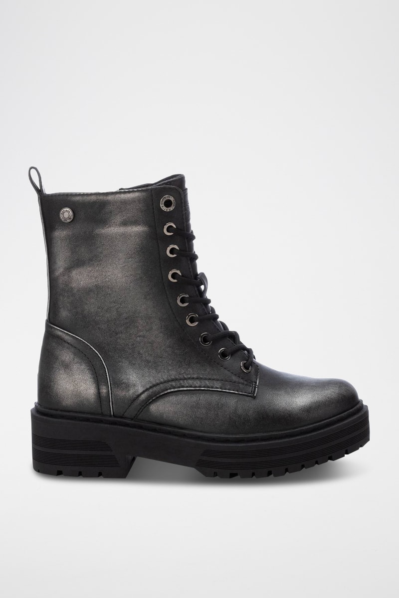 Fermeture à lacets devant et zippée sur le côté intérieur.