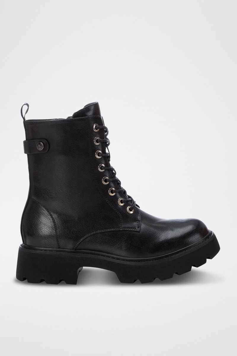 Fermeture à lacets devant et zippée sur le côté.