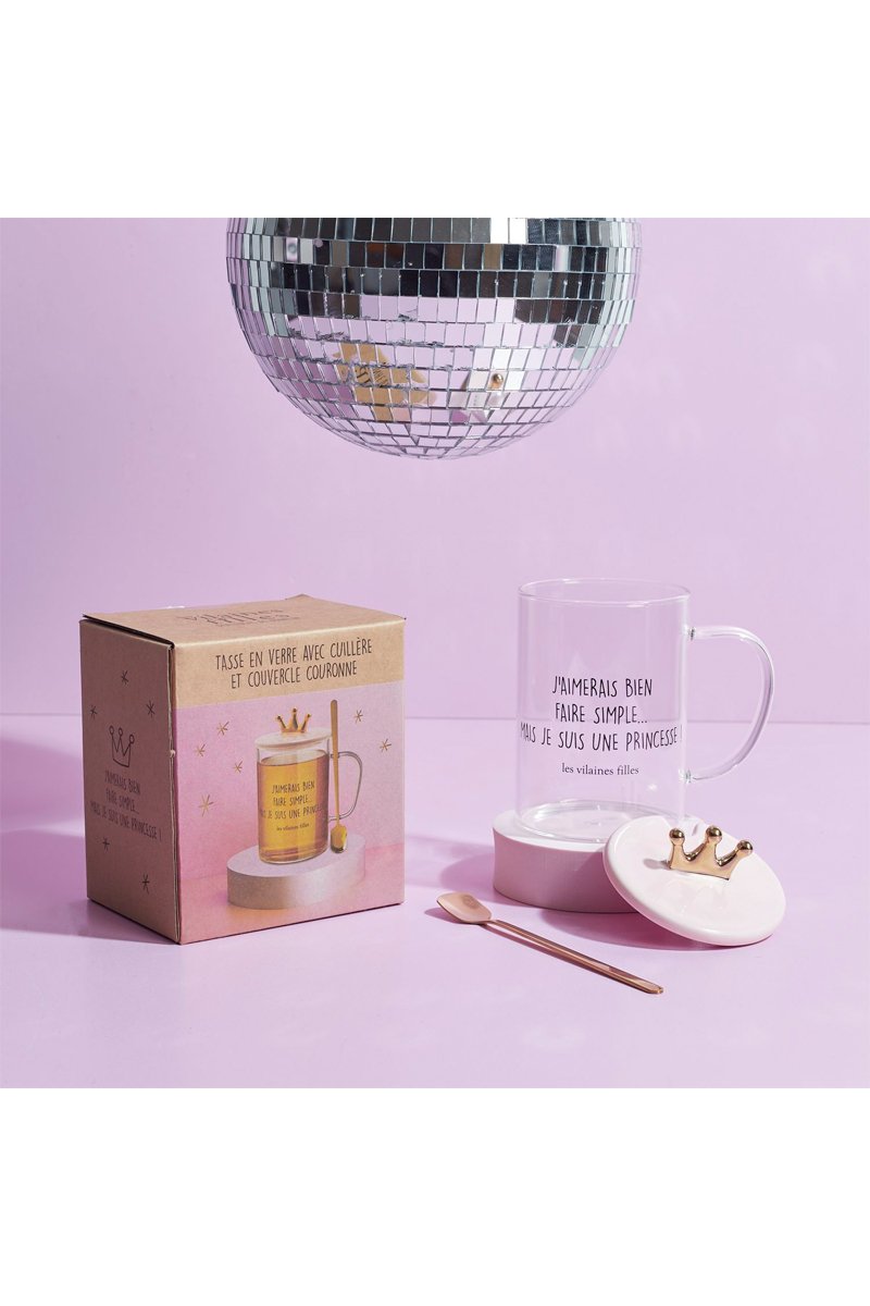 Vous avez beau essayer de vous la jouer normale, mais il faut toujours le petit truc en plus qui fait la différence, comme cette tasse en verre avec sa cuillère pelle et son couvercle rose couronne, par exemple.