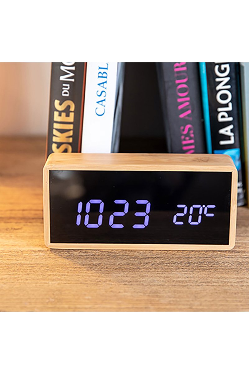 Réveil LED en bambou.