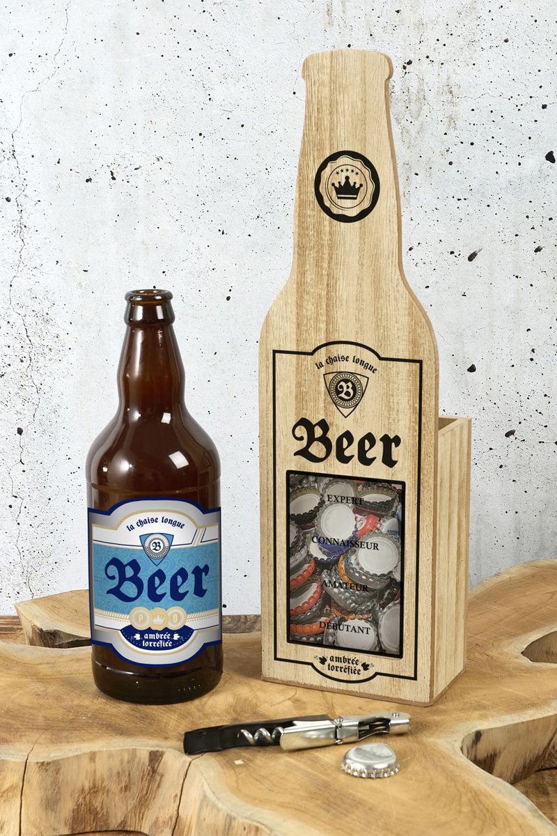Bouteille collectionneur de capsules et tire-bouchon - 10,5 x 35 x 6,5 cm