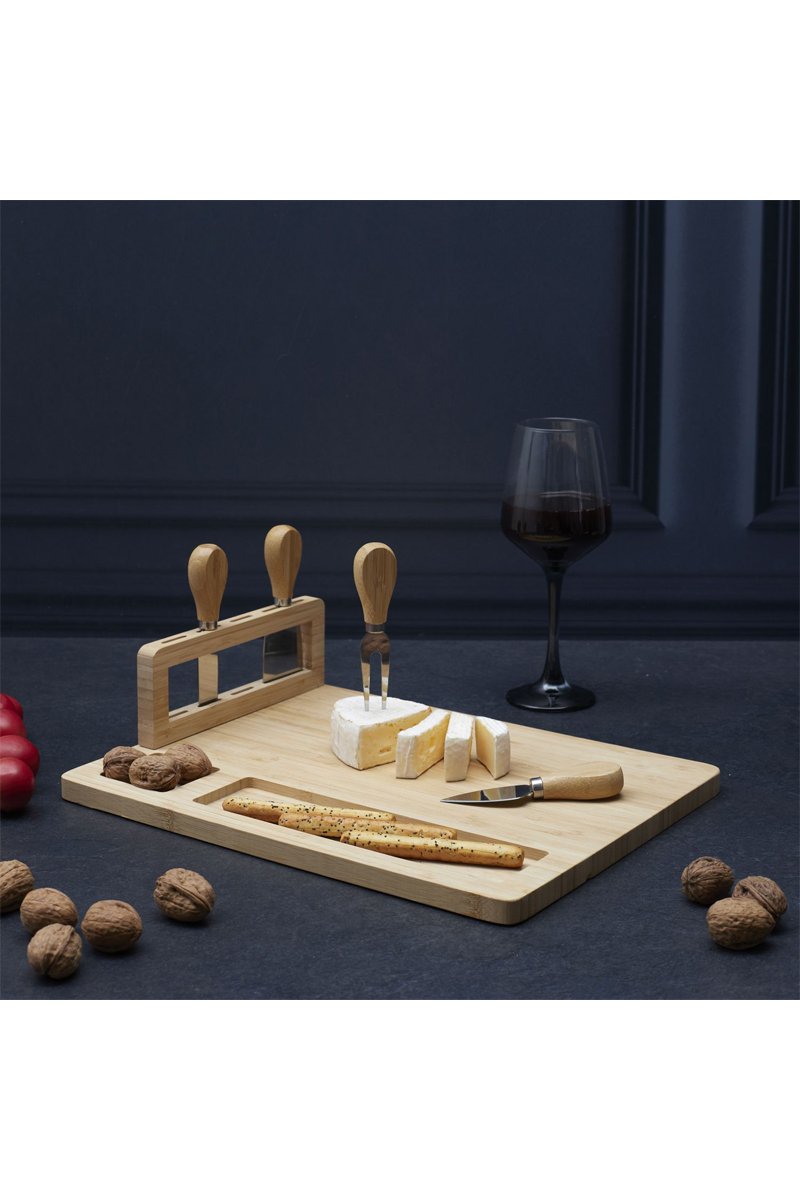 Planche à fromage et 4 couteaux en bambou et en acier inoxydable - Naturel