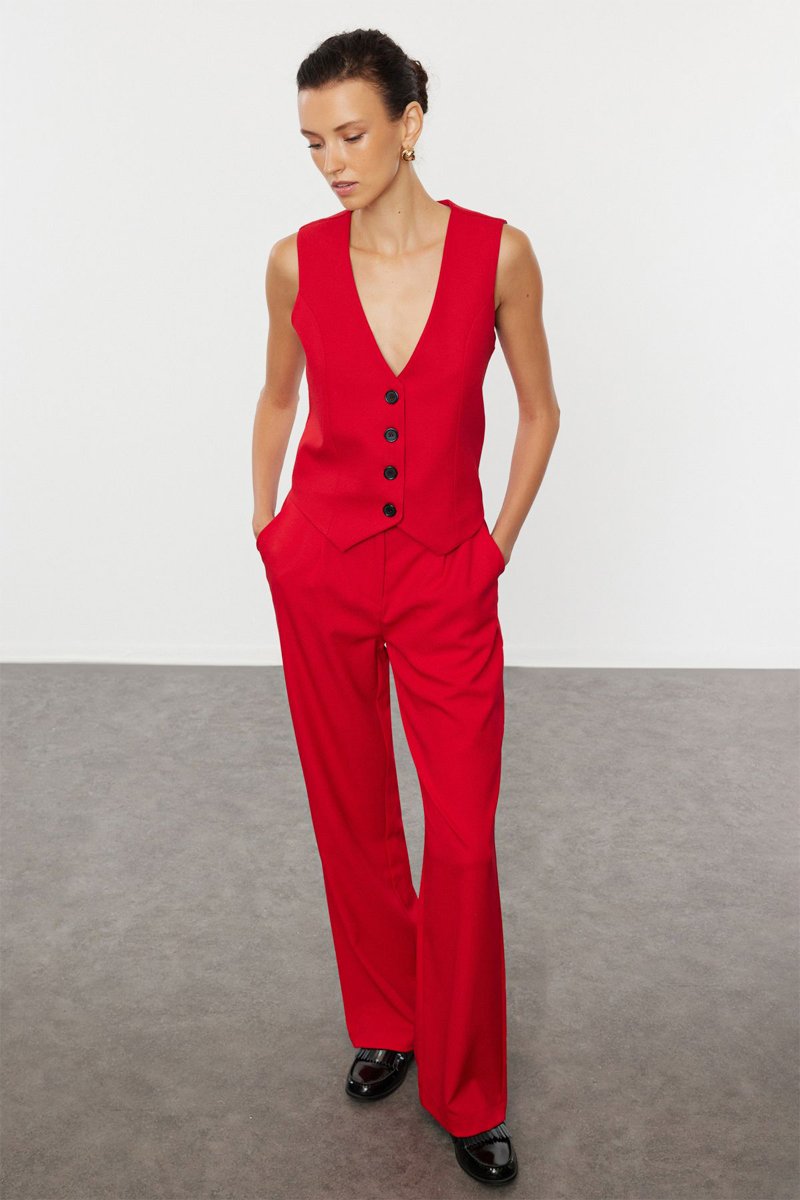 Gilet de costume et pantalon wide legs - Rouge