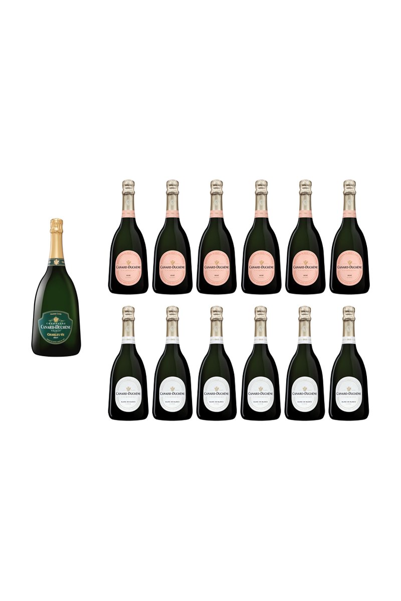 6 bouteilles de Champagne Blanc de blancs Iconic 6 x 75 cl, 6 bouteilles de Champagne rosé Iconic 6 x 75 cl et Magnum Brut Charles VII 1,5 l offert