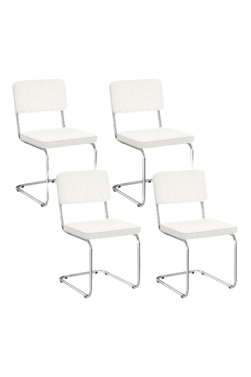 Chaises Naya en bouclette crème et pied métal cantilever - lot de 4