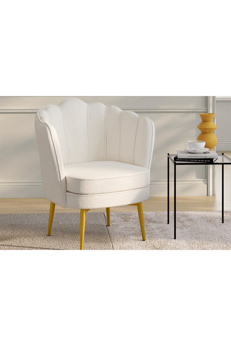 Fauteuil Arielle - Blanc et doré - Velours