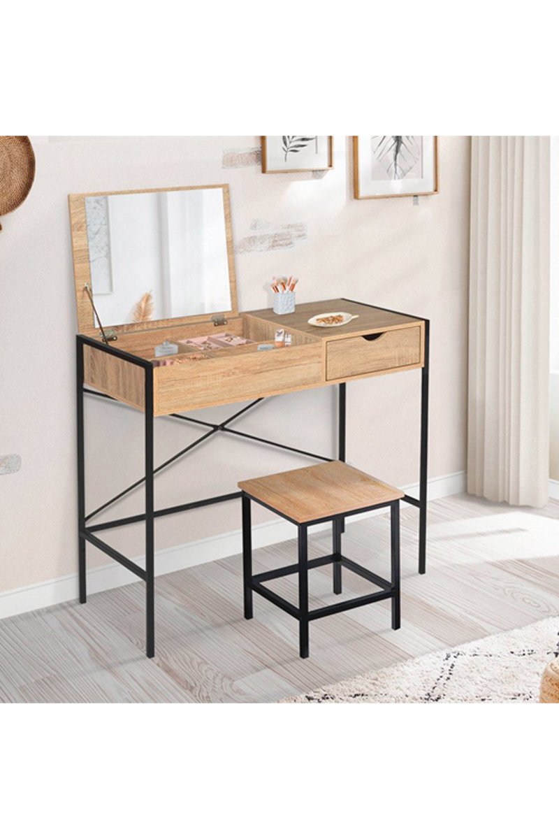 Coiffeuse et tabouret Alana - 83 x 75,5 x 39,5 cm / 35 x 40,5 x 35 cm