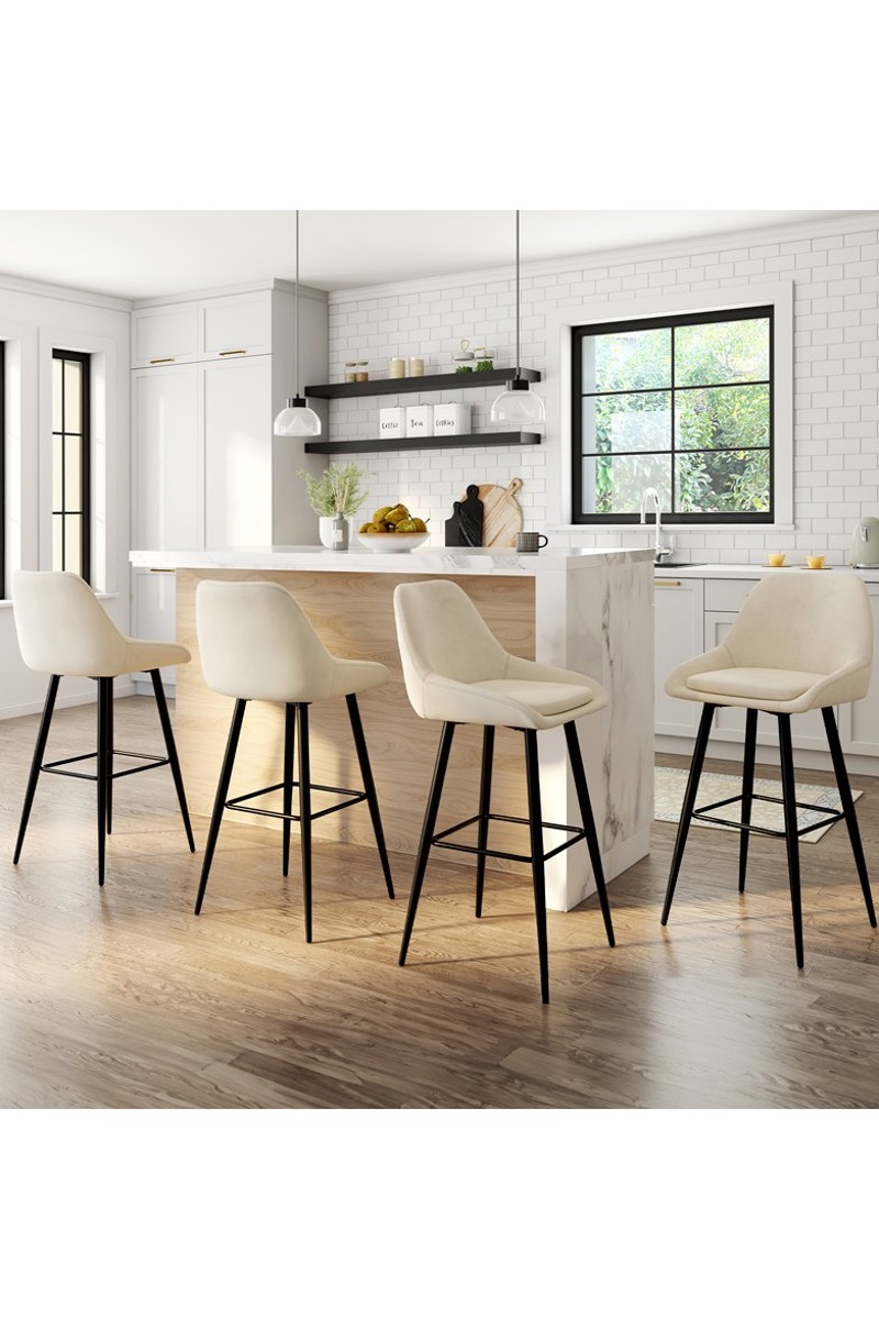 Tabourets de bar Olivia assise velours crème et pieds métal - lot de 4