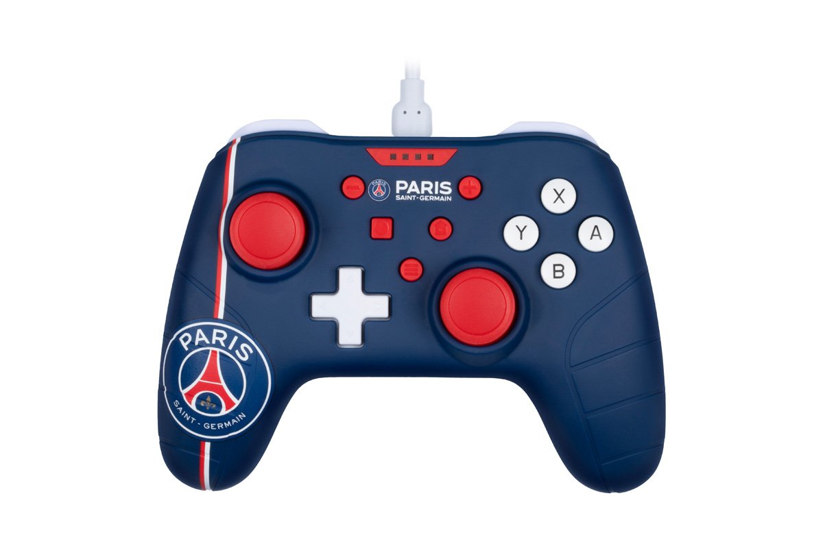 Avant la première utilisation, il est nécessaire d’activer l’option « connexion par câble des manettes pro » dans le menu de la console (dans « paramètres de la console », puis « manette et capteurs »).