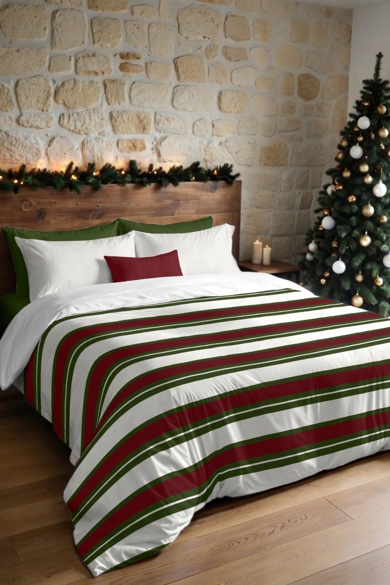 Housse de couette d’inspiration festive, idéale pour transformer votre chambre en un véritable cocon de magie. Motif rayures aux couleurs vives et durables, parfait pour apporter chaleur, couleur et esprit de fête à votre lit. Fermeture pressionnée pratique et discrète pour insérer et retirer facilement la couette. Tissu extra-doux au toucher coton, pour un confort optimal toute la nuit. Ne se froisse pas : toujours impeccable sans repassage. Séchage rapide : prête à l’emploi en un rien de temps. Motif rayures.