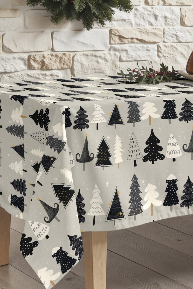 Motifs sapins. Tissu 100% coton naturel, ultra doux et agréable au toucher, confectionné avec deux couches de résine pour une imperméabilité totale. Grâce au traitement hydrophobe, la nappe repousse tous les liquides, même le café, le vin ou la sauce tomate, sans altérer la douceur et la souplesse du tissu. Très pratique au quotidien : un simple coup de chiffon suffit pour la nettoyer, sans passage en machine, et elle est immédiatement prête à l’emploi. Convient aussi pour une utilisation en extérieur. Produit certifié OEKO-TEX®, sans fluorocarbones ni traitements au téflon, garantissant un contact sûr avec les aliments. Fabrication 100% locale en Espagne.