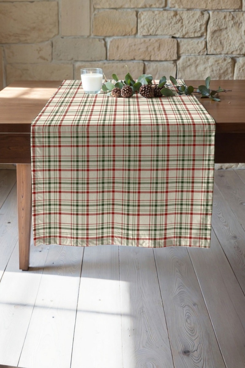 Chemin de table rectangulaire en coton biologique, motif à carreaux. Facile à rouler, il apportera une touche de distinction et de décoration à votre intérieur. S'accorde avec toute vaisselle et accessoires disponibles dans la catégorie Art de la table.