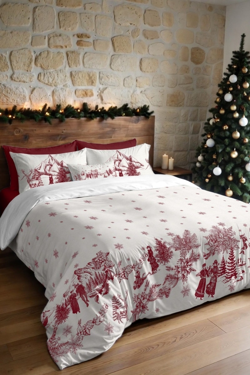 Transformez votre chambre en un espace chaleureux et festif grâce à cette housse de couette au toucher coton extra doux, idéale pour apporter couleur et magie à votre lit pendant les fêtes.