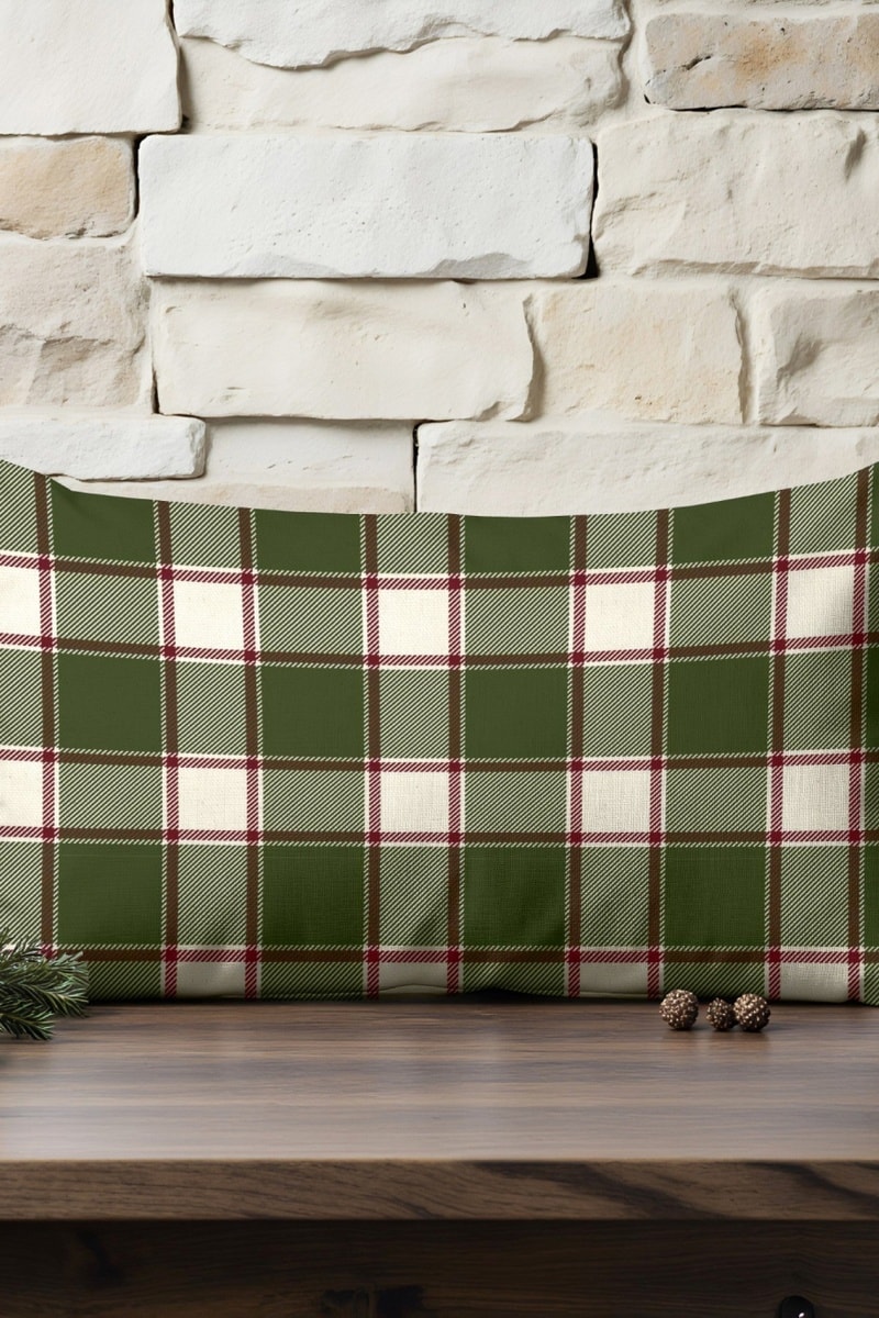 Motif à carreaux vert, écru et rouge, parfait pour une ambiance chaleureuse et festive.