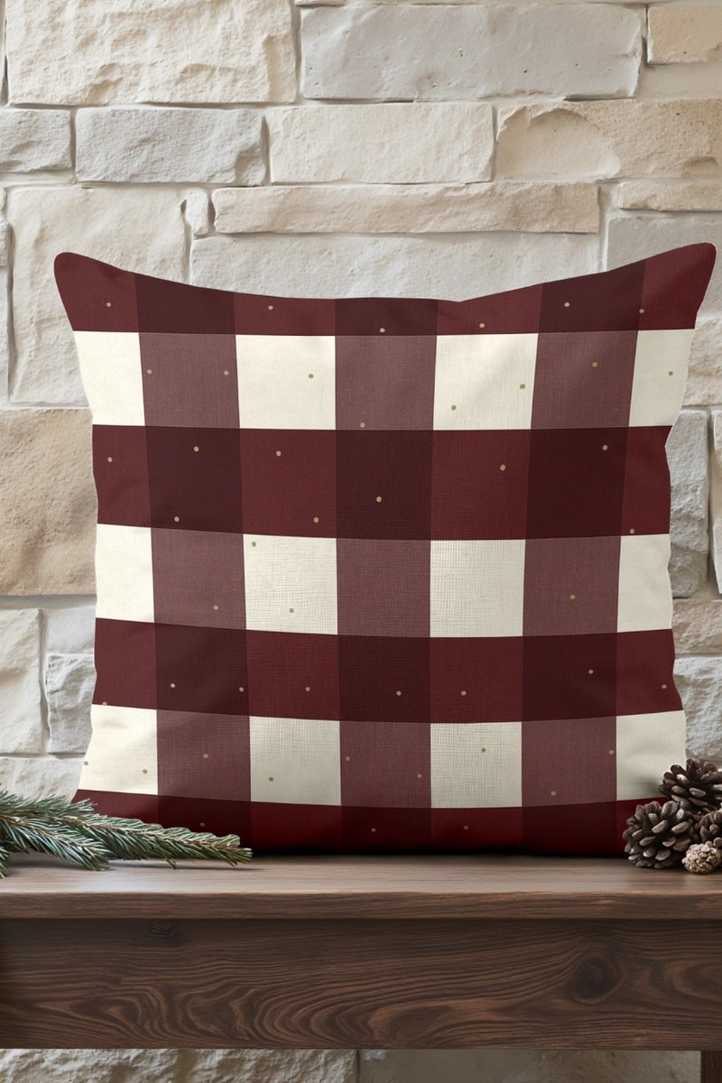 Housse de coussin décorative en coton naturel, imprimée avec un motif à carreaux bordeaux et écru. S'accorde parfaitement avec nos nappes et autres accessoires pour créer un espace chaleureux et harmonieux. Housse vendue sans le coussin de garnissage.