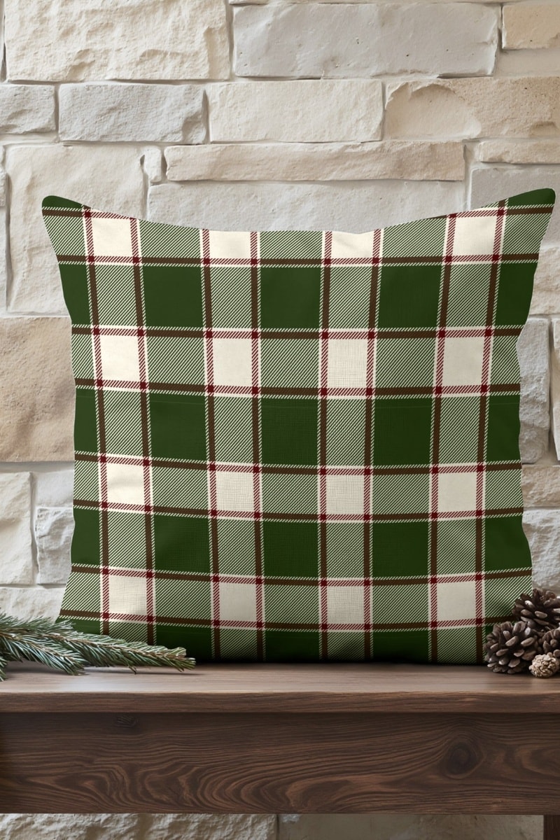 Housse de coussin décorative en coton naturel, motif à carreaux vert et écru, idéale pour créer une ambiance chaleureuse et festive. Imprimée sur un tissu 100% coton, sans produits chimiques, cette housse s’accorde parfaitement avec nos nappes et autres accessoires de la collection. Fabriquée en Espagne, elle ne contient pas de rembourrage.