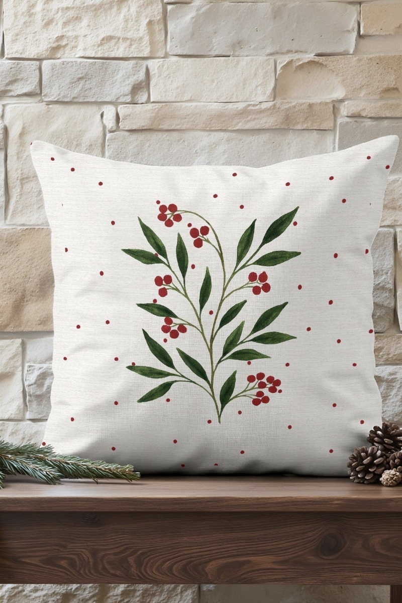 Housse de coussin en coton, motif végétal inspiré de la forêt d'hiver. Idéale pour apporter une touche naturelle et chaleureuse à votre intérieur.
