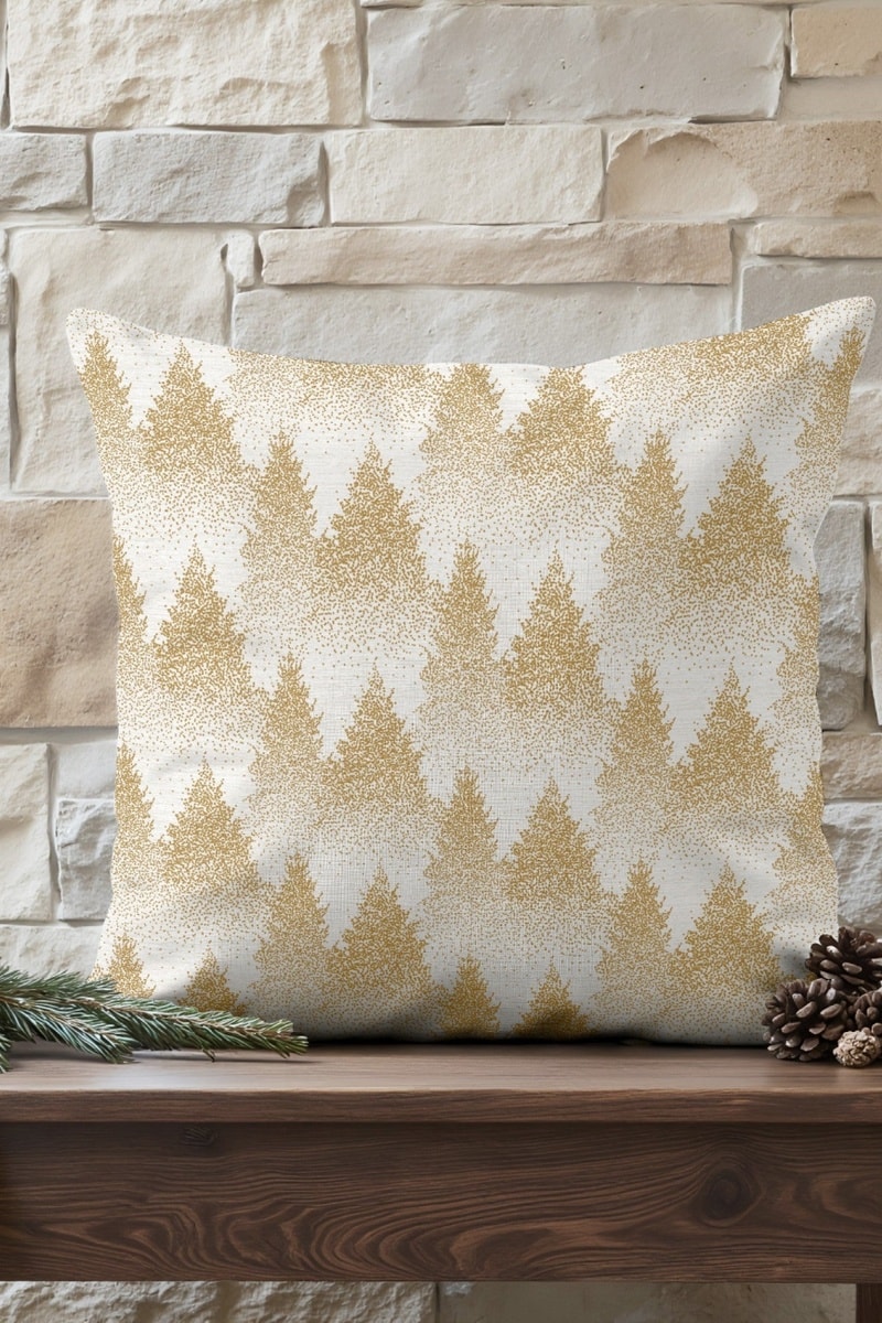 Motif sapins dorés inspiré de la forêt d'hiver.