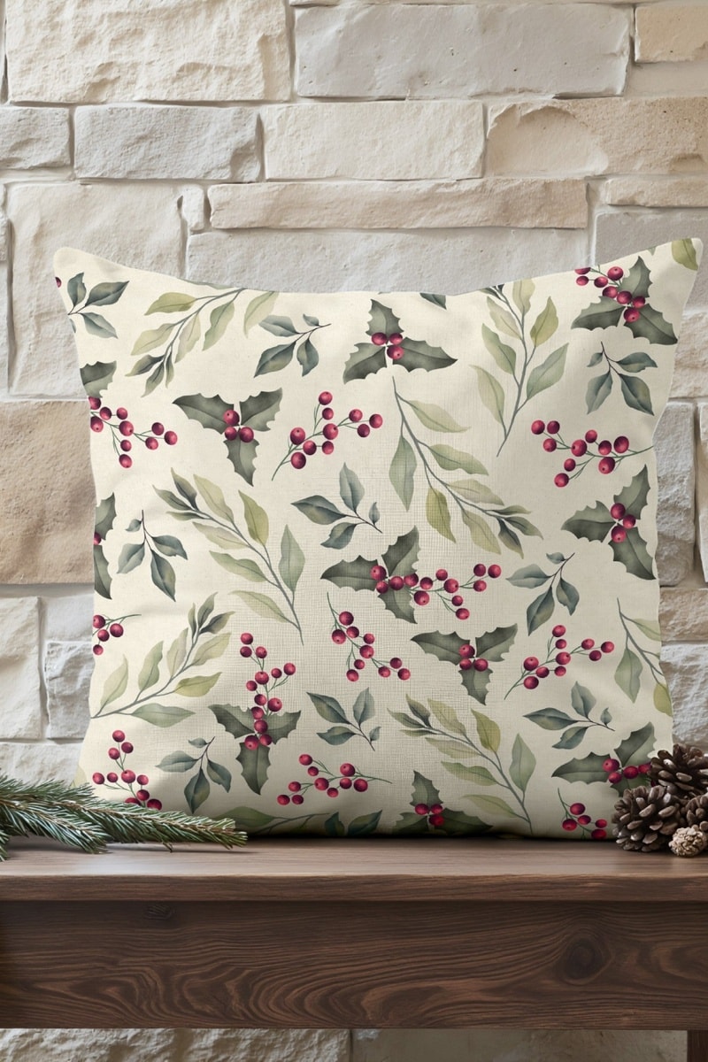 Motif feuillage et baies inspiré de la forêt d'hiver, imprimé sur tissu 100% coton naturel, sans produits chimiques. Fabriqué en Espagne.