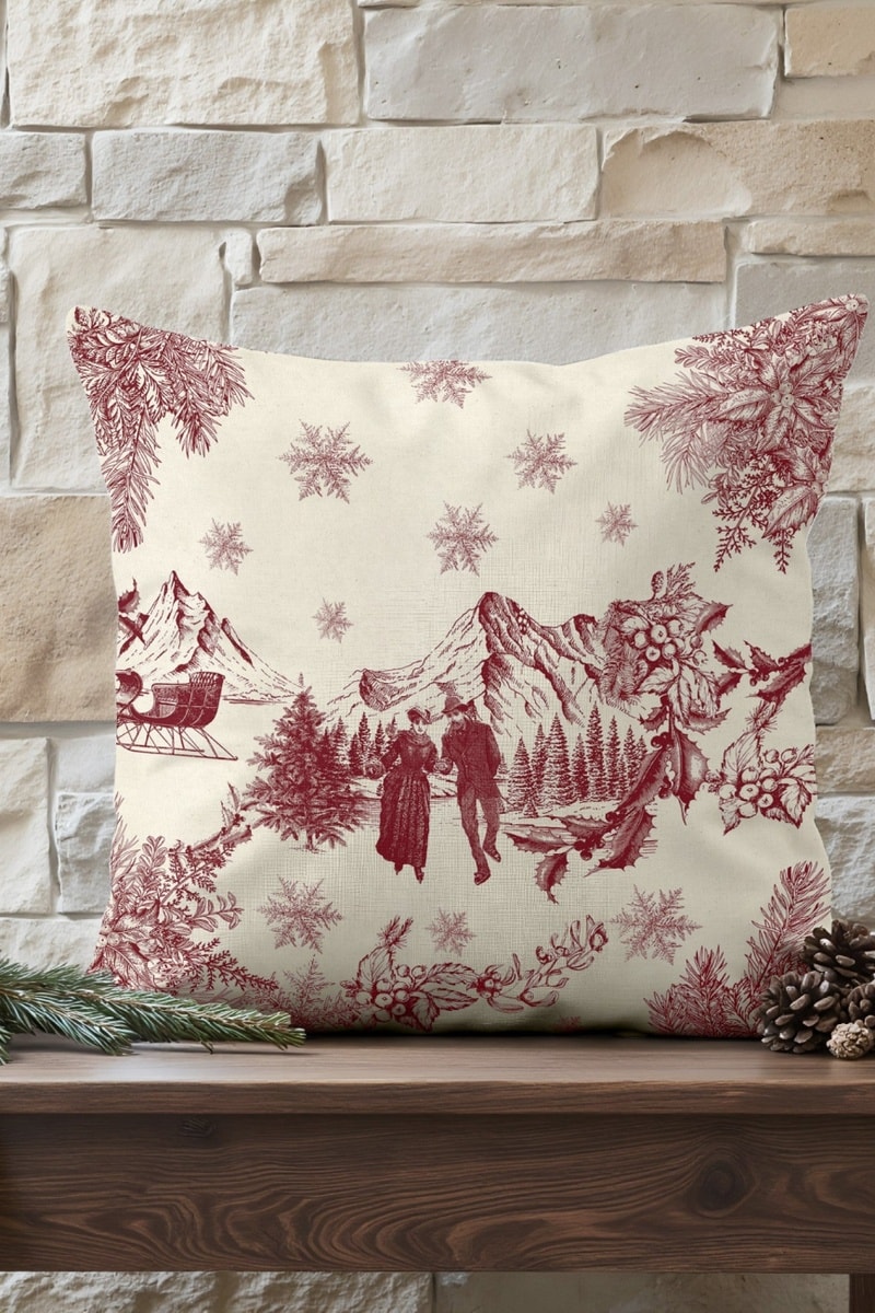 Housse de coussin Forêt d'Hiver - rouge - 50 x 50 cm