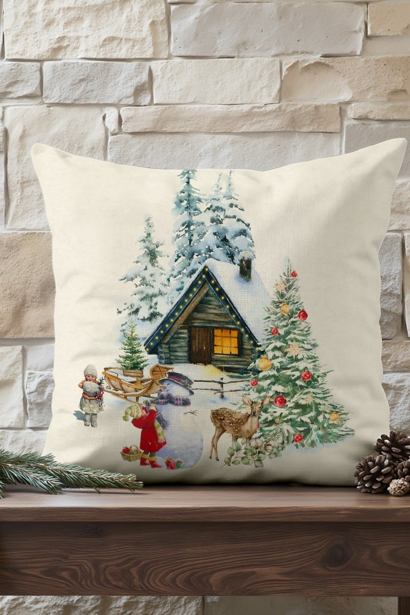 Housse de coussin décorative en coton naturel, issue de la collection Forêt d'Hiver.