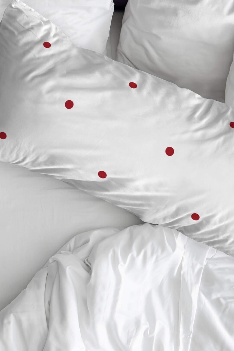 Taie d'oreiller en tissu extra doux 100% coton, motif à pois rouges inspiré de l'esprit de Noël. Fermeture pressionnée discrète pour une utilisation facile. Apporte chaleur, couleur et style festif à votre chambre, idéale pour renouveler votre lit pendant la saison hivernale.