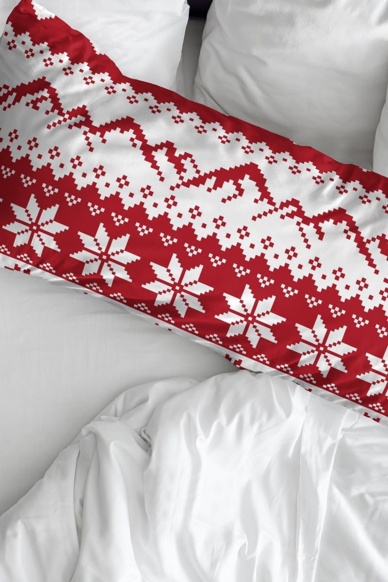 Taie d'oreiller à motif géométrique inspiré de l'esprit nordique et festif, idéale pour apporter chaleur et style à votre chambre pendant la saison hivernale. Confectionnée en tissu extra-doux au toucher coton, elle offre une sensation confortable toute la nuit. Fermeture pressionnée discrète pour une utilisation facile. Facile d'entretien : ne se froisse pas, sèche rapidement et conserve des couleurs éclatantes lavage après lavage.