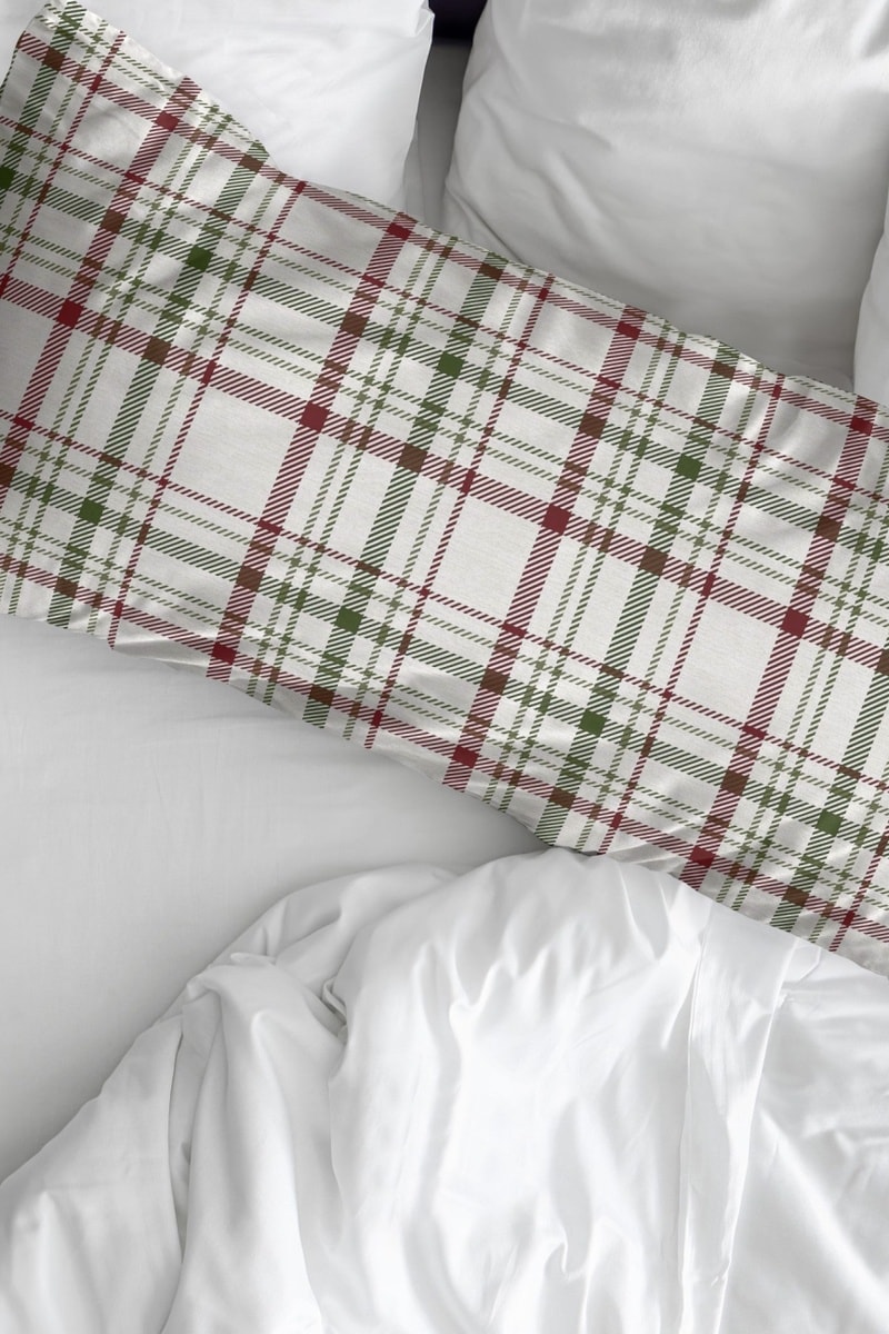 Taie d'oreiller à motif à carreaux d'inspiration festive, idéale pour apporter chaleur et style à votre chambre pendant la saison hivernale. Fermeture pressionnée discrète pour une utilisation facile. Tissu extra-doux au toucher coton, conçu pour garantir confort et douceur toute la nuit. Facile d'entretien : ne se froisse pas, sèche rapidement et conserve des couleurs éclatantes lavage après lavage.