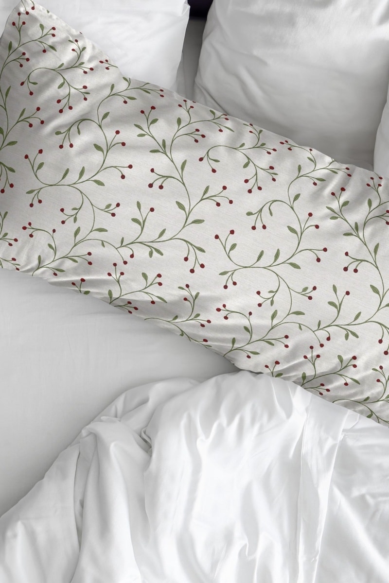 Taie d'oreiller à motif végétal inspiré de l'esprit de Noël, idéale pour apporter une touche festive, chaleureuse et colorée à votre chambre. Confectionnée en tissu extra doux au toucher coton, elle offre une sensation confortable tout au long de la nuit. Fermeture pressionnée discrète pour une utilisation facile. Pratique et stylée, elle ne se froisse pas, sèche rapidement et conserve des couleurs éclatantes lavage après lavage.