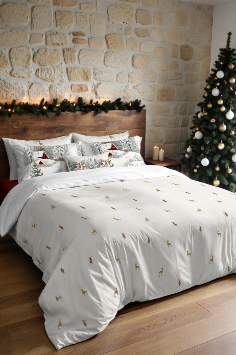 Housse de couette d’inspiration festive, motif cerfs et forêt enneigée, idéale pour transformer votre chambre en un véritable cocon de magie hivernale. Son tissu extra-doux au toucher coton offre une sensation confortable et chaleureuse toute la nuit. Pratique, sa fermeture à pressions cachées permet d’insérer et de retirer facilement la couette. Parfaite pour renouveler votre lit pendant la saison des fêtes, elle apporte couleur, style et esprit de Noël à votre intérieur.
