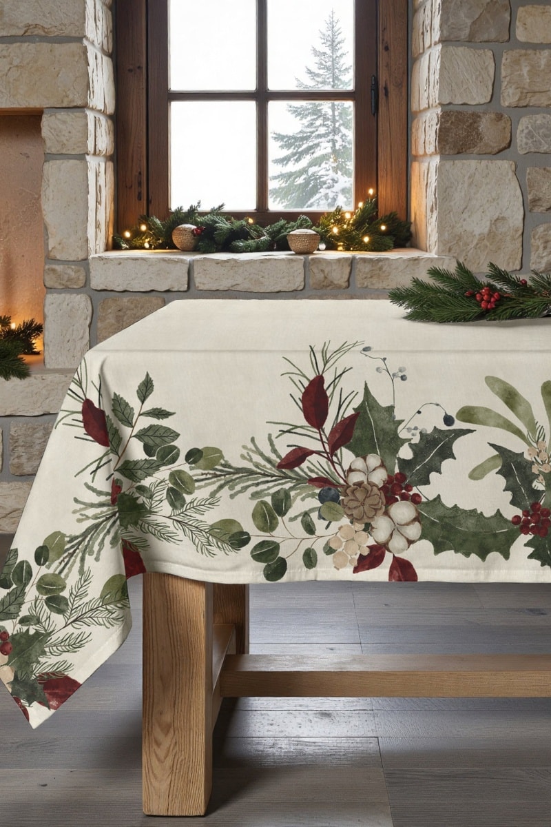 Motifs végétaux et floraux inspirés du houx, des baies et des branches de pin, parfaits pour une ambiance festive et naturelle.