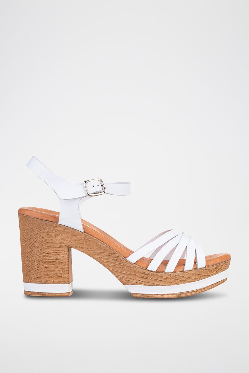 Sandales à talons en cuir.