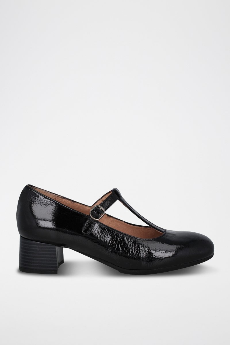 Salomés à talons en cuir verni Regina - Noir